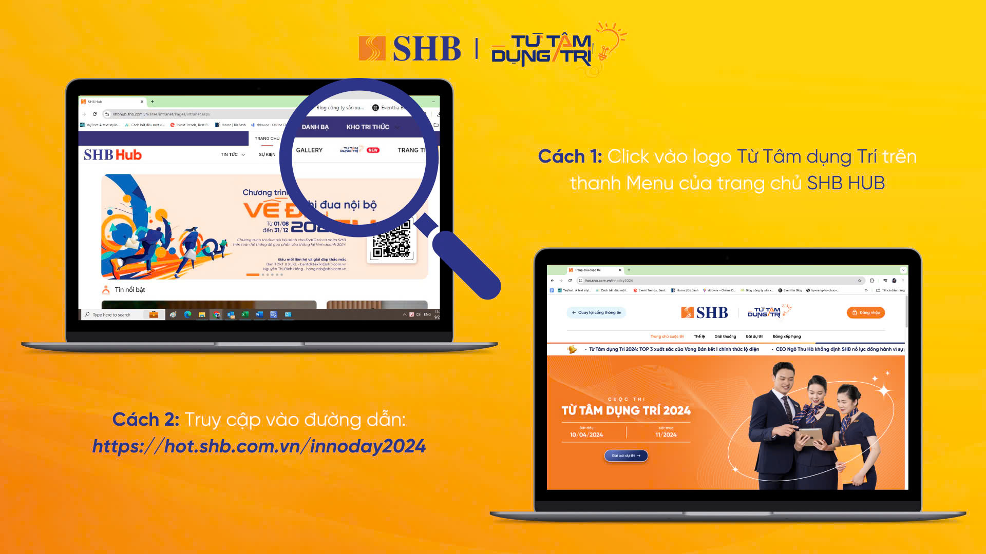 Đồng thời, Ban tổ chức chính thức nhận bài dự thi thông qua SHB HOT - SHB House of Talents - Trang tin chính thức của chương trình Từ Tâm dụng Trí và đăng nhập thông qua tài khoản Email của hệ thống nội bộ.